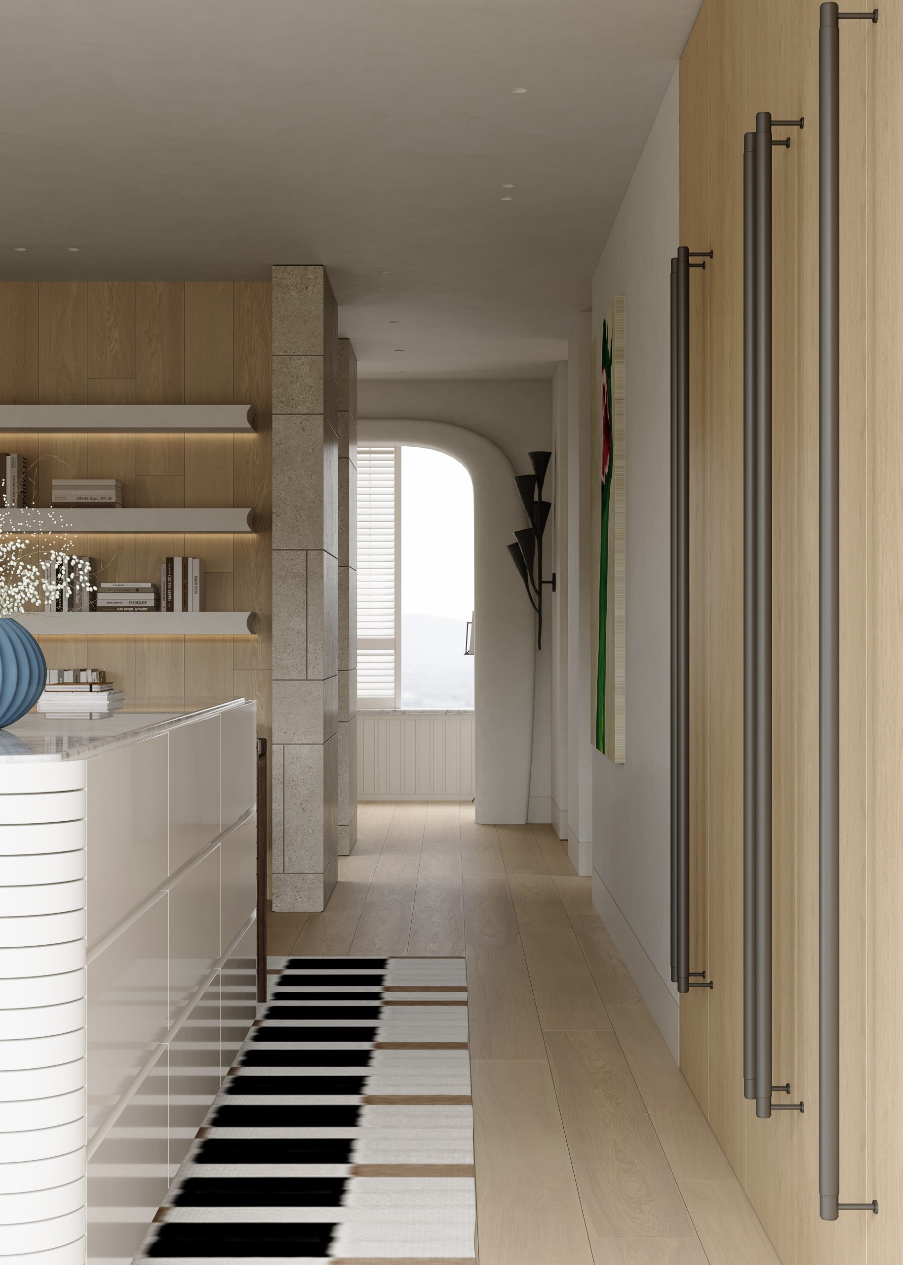 本次设计有别于以前我们以设计师视角规划动线,而是先有动线,再有设计,从客户的生活动线出发,物品所在之处皆是需要,让空间服务于人,而非人去适应空间。